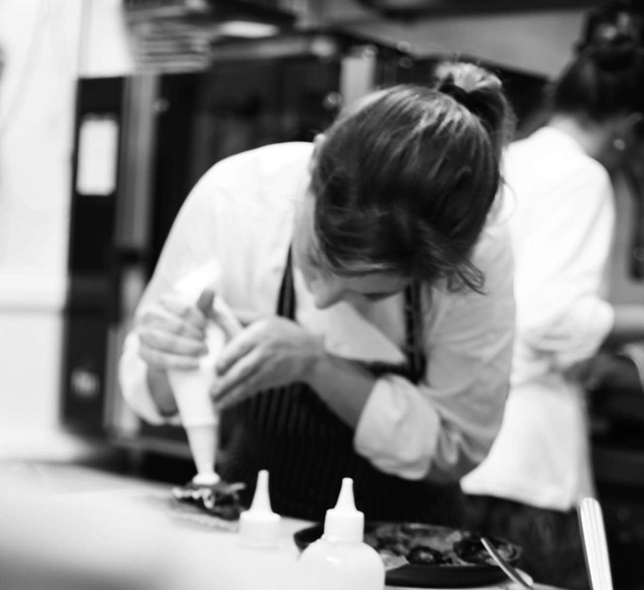 Mi trayectoria está marcada por innumerables cocinas y experiencias. He tenido el privilegio de aprender de grandes chefs con estrellas Michelin que me han moldeado como mujer y cocinera. Pero también he aprendido del que me enseñó a tirar mi primera cerveza en un bar de fútbol o del que me vendió carbón, mostrándome el arte del fuego.